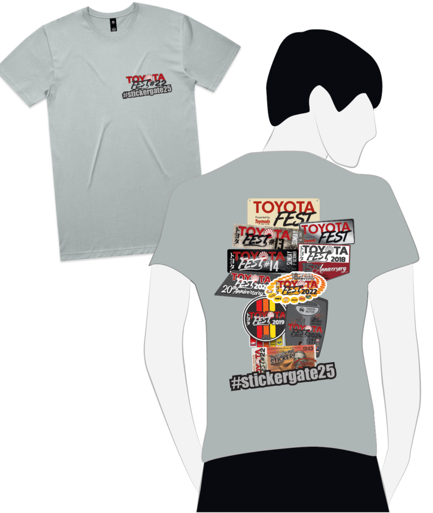 We’ve designed a fun T-Shirt which can be purchased as a memento of your ToyotaFest experience and worn for all year round wardrobe awesomeness.